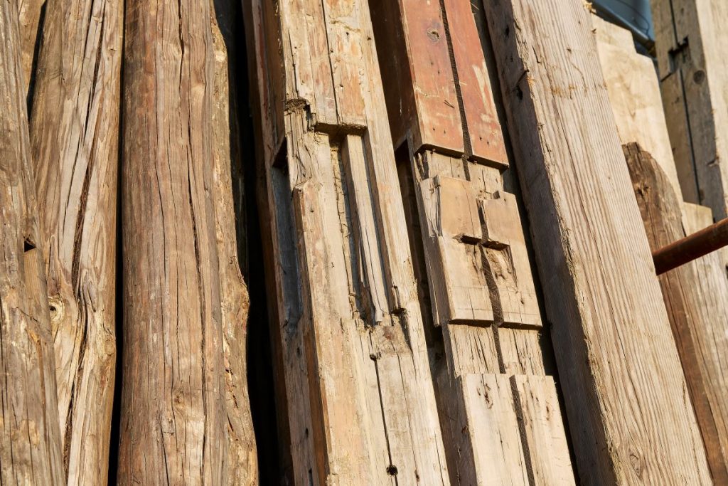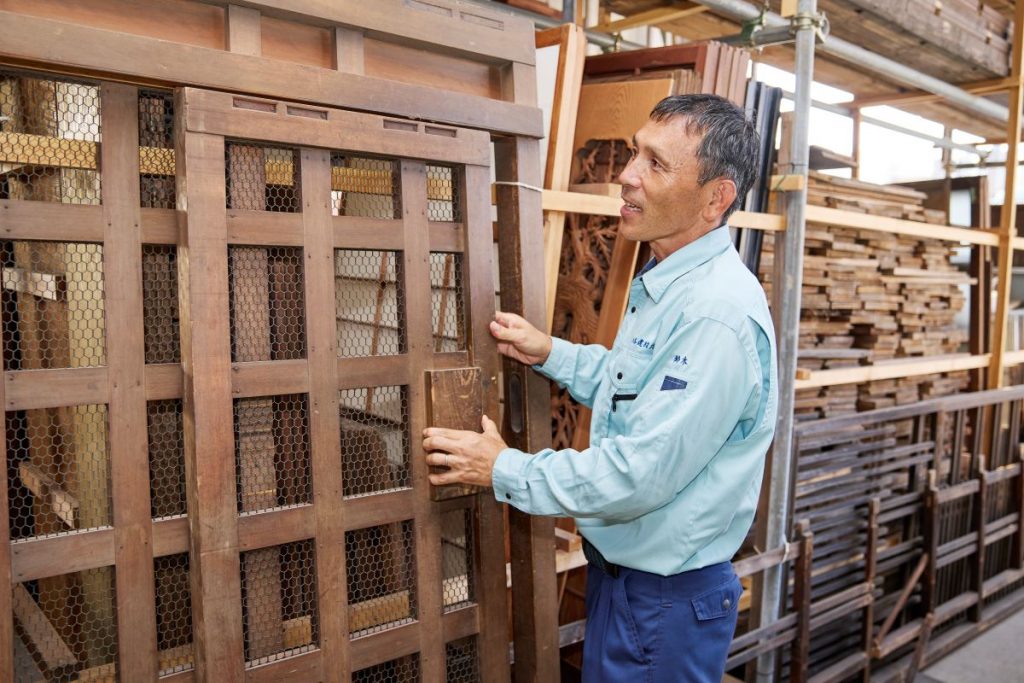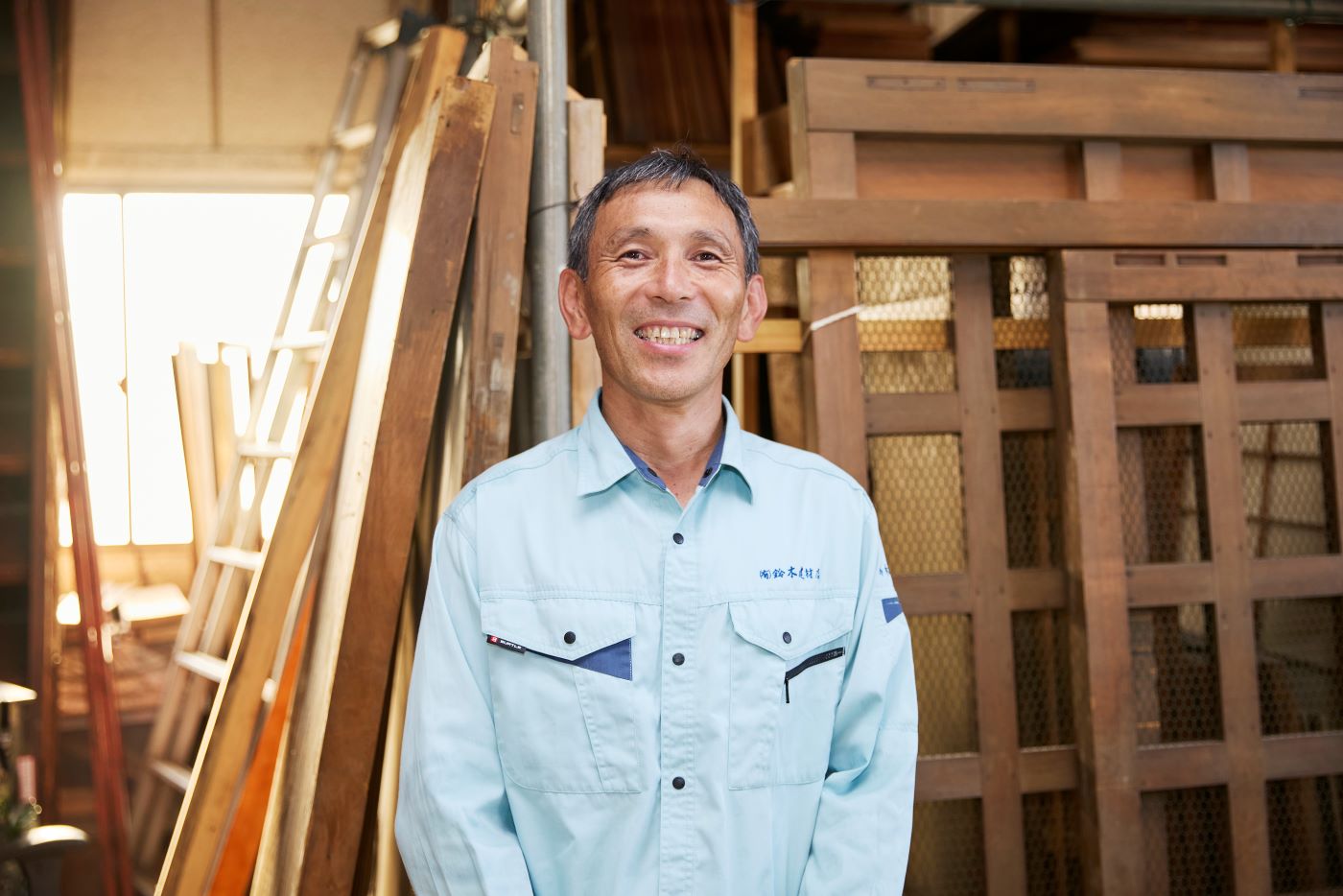 鈴木社長「父から私に代替わりする以前、私は別の企業に勤めていました。一級建築士の資格を取得していたため、入社とともに〝家を建てる〟という事業も加わりました。解体の現場からは柱や梁といった廃材が出てきます。それらは新たに建てる家やお店で、装飾や家具の一部としてリユースしています。古材とはいえ、しっかりした強度を持つものは建築資材としても十分に使えます。古い建具や門扉、ガラス窓なども、当社の資材置き場で大切に保管しているんですよ」