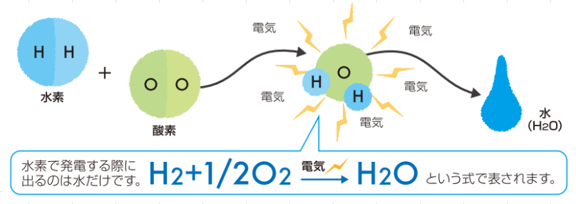 水素は酸素と結びつけることで発電し、その電気はエネルギーとして利用することができます。あるいは水素を直接燃焼することで熱エネルギーとすることも可能。いずれの場合もCO2の排出はゼロ。非常にクリーンなエネルギーなのです。