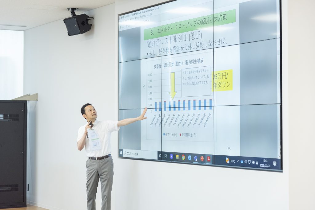 これまで、中小企業診断士として多くの企業コンサルティングを手掛けてきた田村健人さんは、エネルギー管理士、東京都排出量取引制度技術管理者の立場からも常に的確な助言をされてきた経営改善支援のスペシャリストです。先日行われたセミナーにおいても、エネルギーコストアップの原因と対策、省エネの基本的な考え方など、脱炭素経営への取組に欠かせないさまざまなポイントを講義していただきました。
